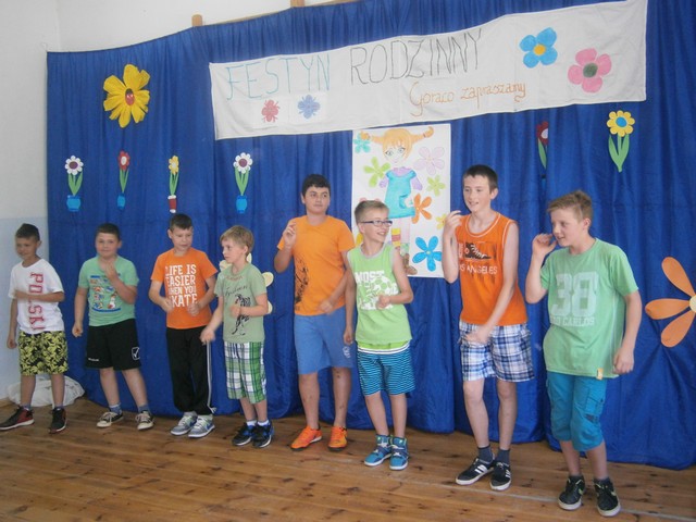 Dnia 1.06.2016 w naszej szkole odbył się Festyn Rodzinny. O godzinie 9.00 Pani Dyrektor powitała wszystkich rodziców i gości. W programie artystycznym wystąpiły dzieci z przedszkola oraz klas I- III. Były wiersze, piosenki i tańce. Następnie dziewczęta z grupy tanecznej Avers przedstawiły układy taneczne hip-hop oraz dance tańców nowoczesnych. Z programem tanecznym wystąpią w Otmuchowie, w sobotę na Lato Kwiatów. Chłopcy na wesoło przedstawili składankę tańców. Wszystkie występy spotkały się z wielkimi brawami publiczności. Następnie na boisku szkolnym rozpoczęły się ciekawe zawody i gry sportowe. Odbyły się także konkursy rodzice- dziecko. Wszystkie dzieci otrzymały lody i kiełbasę z grilla. Mamy upiekły pyszne ciasta, za udział w zawodach i konkursach były liczne nagrody. Pogoda dopisała, a przede wszystkim humor.